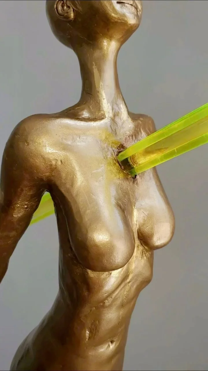 Adrienne is a queer, mixed-race Lebanese American, raised between the layered realities of Miami and the Middle East, experiencing the firsthand effects of love, death, belief, cptsd, rebirth and transformation across cultures- having found solace in what unites and interconnects us all. Intertwined within her lifetime as a sculptor, she is also a Bodyworker, Energy Worker, and Death Doula, utilizing Sculpture as a large scale healing modality- a Bridge between worlds.